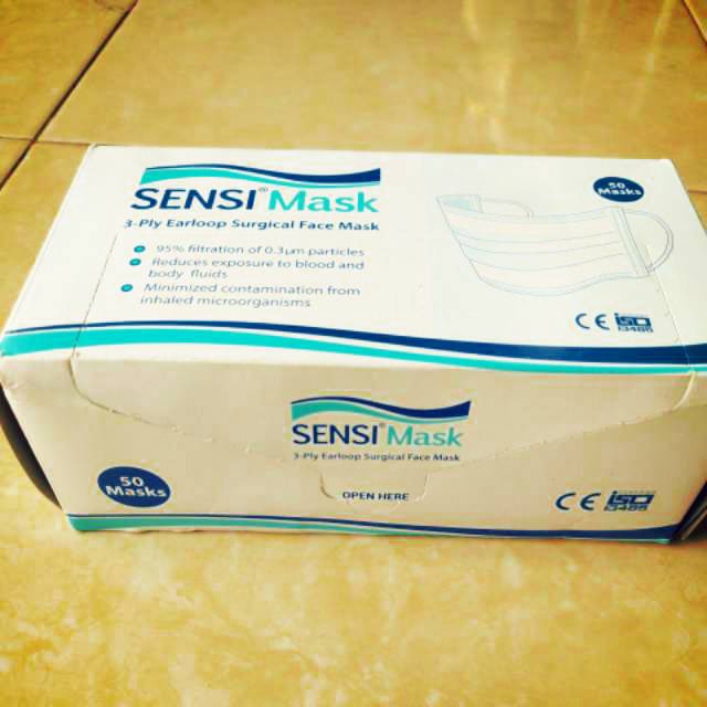Masker sensi 3 ply earloop surgical mask.